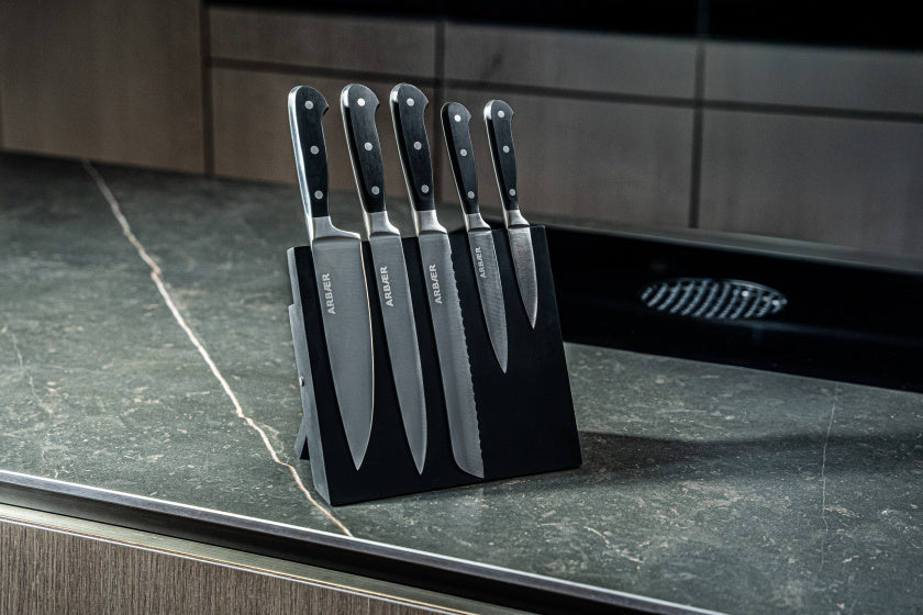 Deze Arbaer messenset heeft niet alleen een luxe en moderne uitstraling, maar is ook nog eens makkelijk te onderhouden. Zo zijn de lemmeten roestvrij en makkelijk te slijpen. De ABS handvatten (kunststof) zijn sterk en hebben daardoor geen onderhoud nodig. Het houdt de messen licht en heeft veel grip, ook als het mes nat is of bij vette vingers. In combinatie met het scherpe roestvrije staal (1.4116) een perfecte set voor in de keuken!