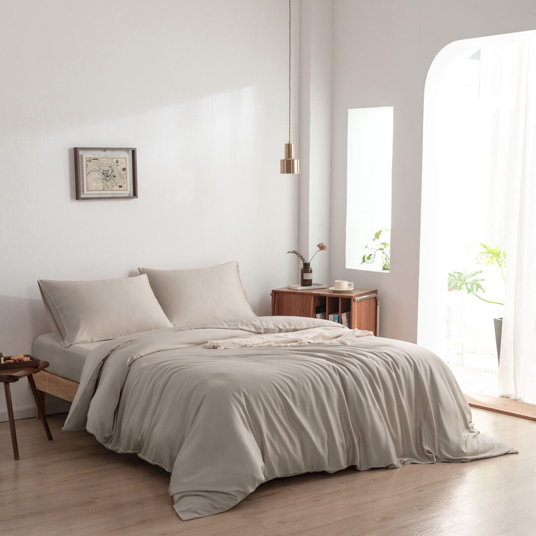 Ontdek het geheim voor serene dromen en een rustgevende nachtrust. Niets is kostbaarder dan heerlijk slapen voor jou. Verwen jezelf met het ultieme comfort van ons biologische bamboe dekbedovertrek in de kleur Soft Taupe.